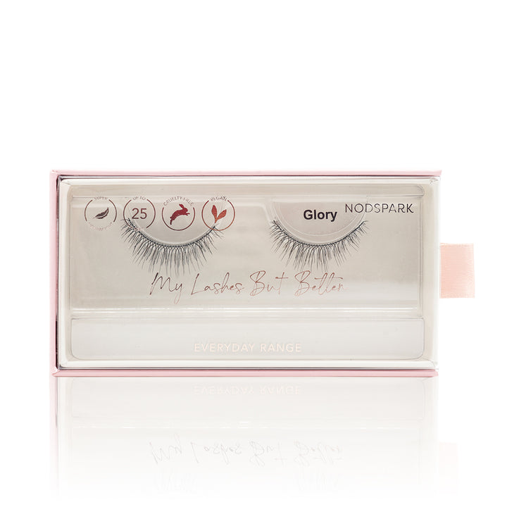 Material: Cotton band with plant fibre bionic lashes. *Please note that Glory lash style carries a sparse number of brown strands, but it's otherwise mostly black lashes