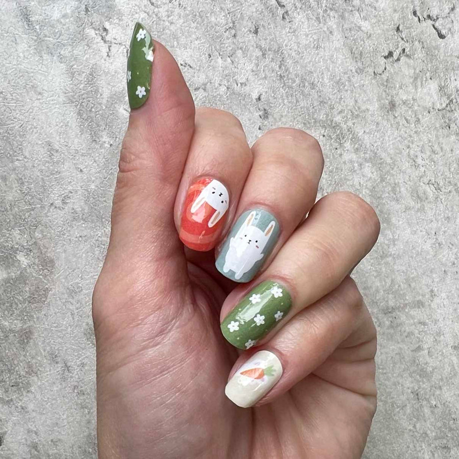 The cutest bunny-themed nail wrap yet. Get real cute and fuzzy with this rabbit manicure (with carrots- no less), and you could possibly get away with anything.