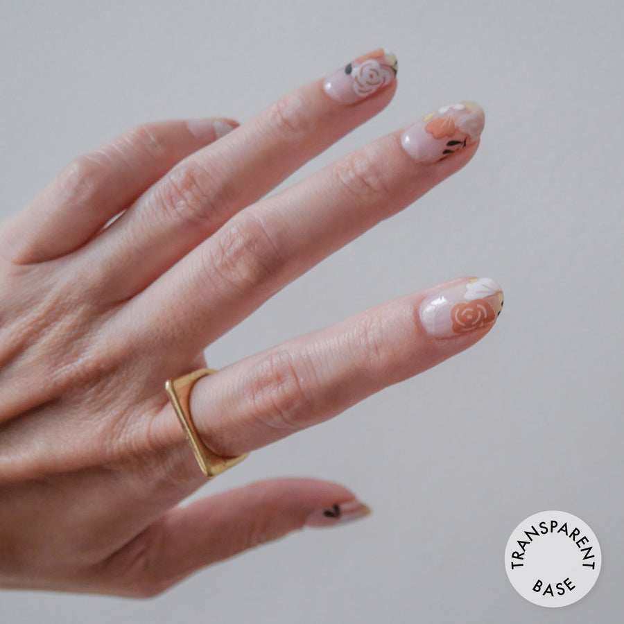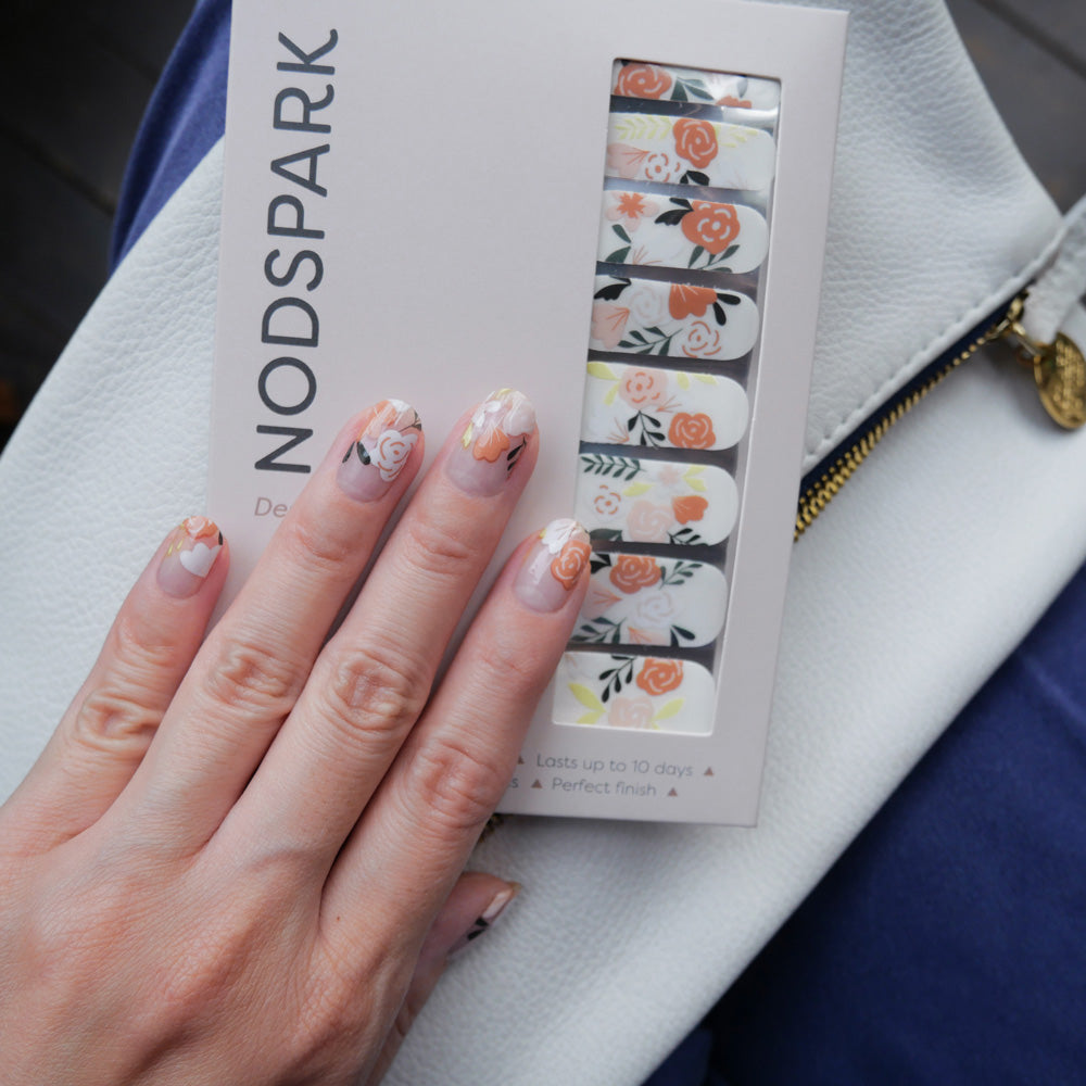 What might a glorious handpainted garden look like on your finger tips? A happy dance of botanical prints and lush wildflowers, Summer Blossoms lets you grow your nails out in style. Staying polished has never been this easy!