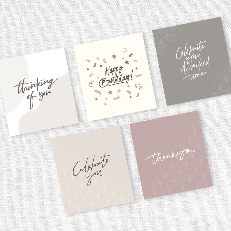 Because handwritten cards are almost extinct in this digital age, we've designed a trio of greeting cards for you. Perfectly sized to pour out your adoration for your best friend, and perfectly paired with your Just Because gift.