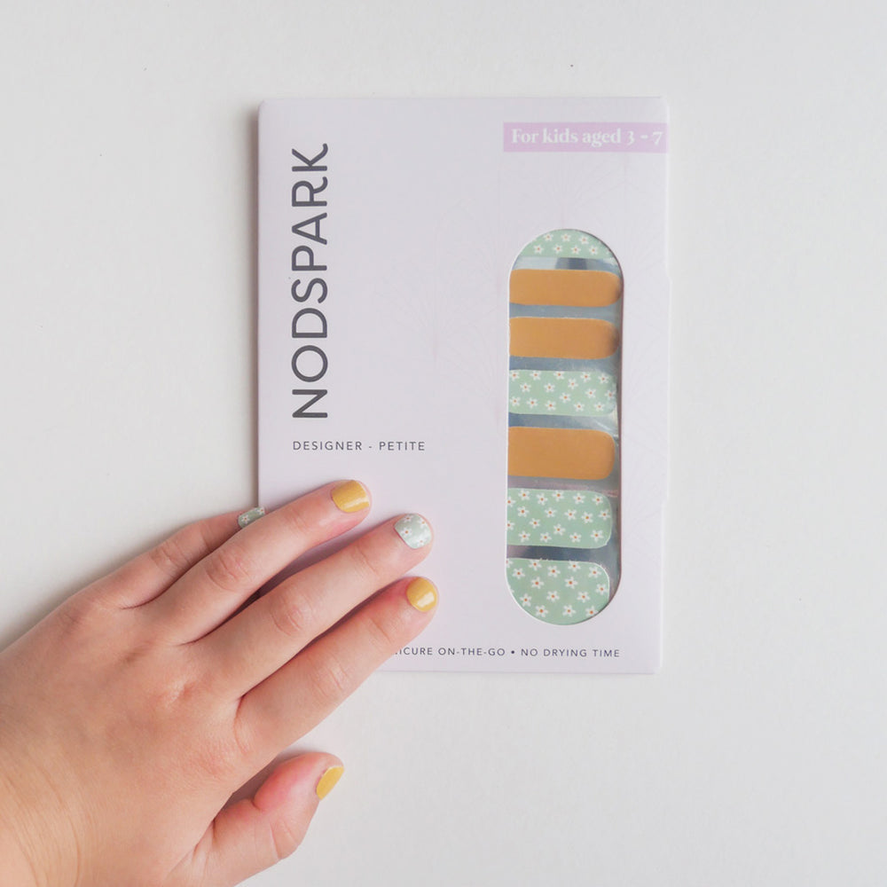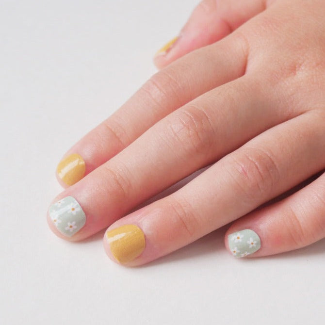 With petite daisies blooming across her fingertips, your little one will be picnic-ready with this summery ensemble. Flaunt matchy nails with our twinning adult's set, and enjoy some precious mama-and-daughter time at the same time!