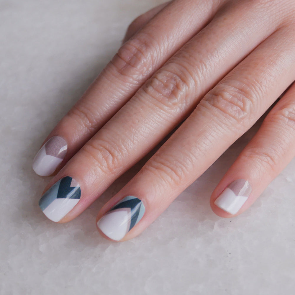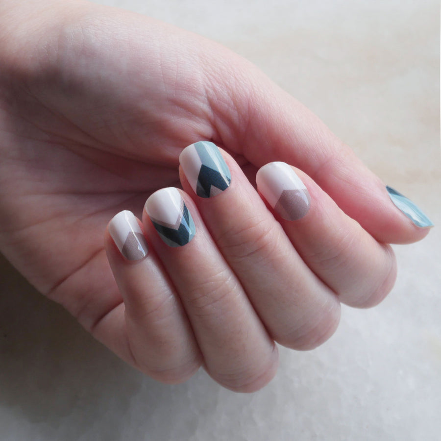 Strike a pose with this classic geometric manicure design. Adapted from a past popular set, this bold shade of blues and the sweetest pinks will elongate your fingers, and is set to stand out.