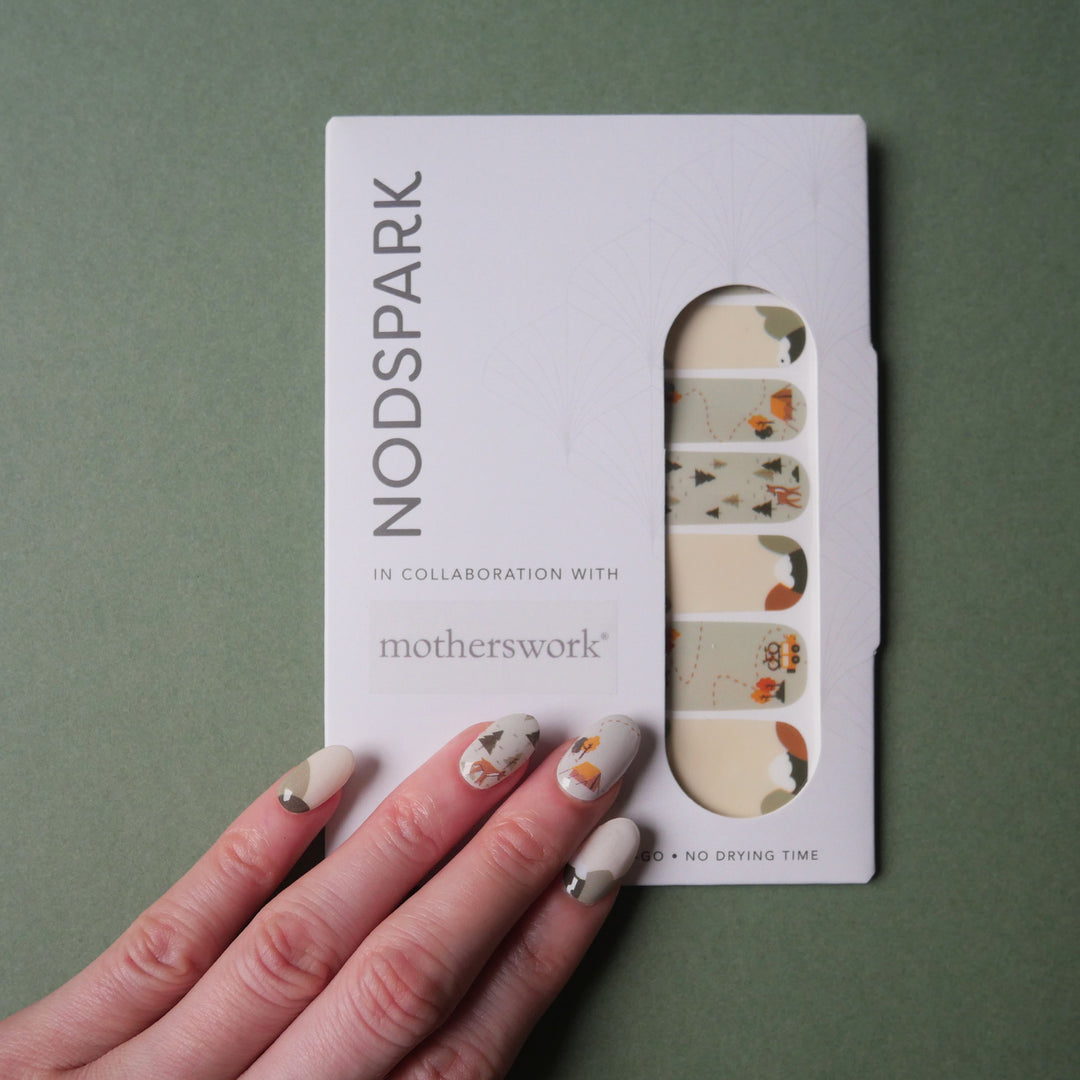 Le Petite Camping nail wrap, a Motherswork x Nodspark collaboration, is a great way to enjoy a fuss-free, time-saving manicure. Made by a busy mother for the busy mothers, Nodspark is a convenient way to take a moment for self-care, allowing one to enjoy salon-quality manicure without having to leave the house.