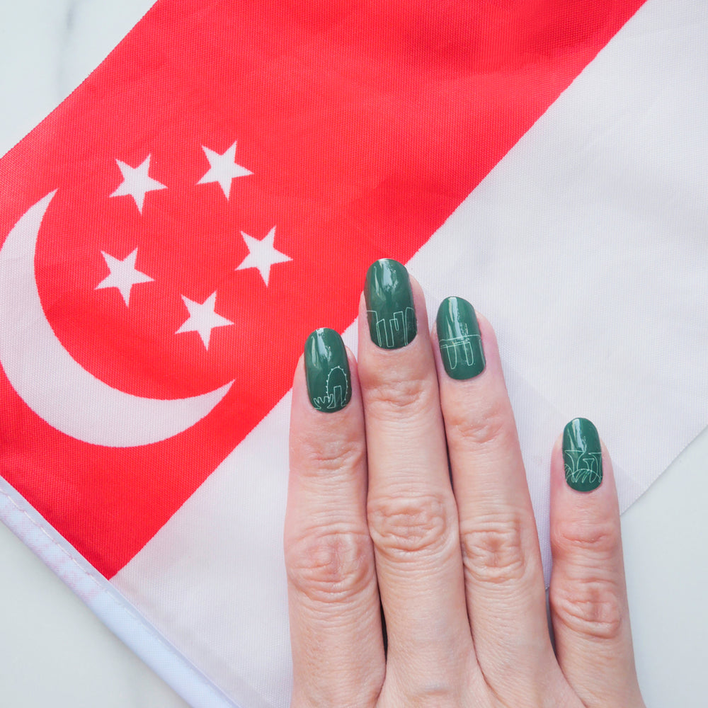 Showing patriotism doesn't always have to be the form of red! Celebrate Singapore's National Day in style with Garden City. Featuring line art of Singapore's most iconic landmarks - Gardens by the Bay, Marina Bay Sands, Singapore Flyer, ArtScience Museum, and the Esplanade!