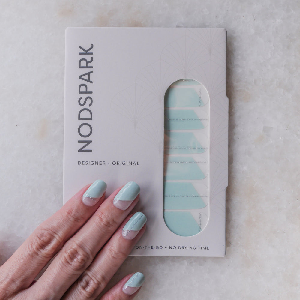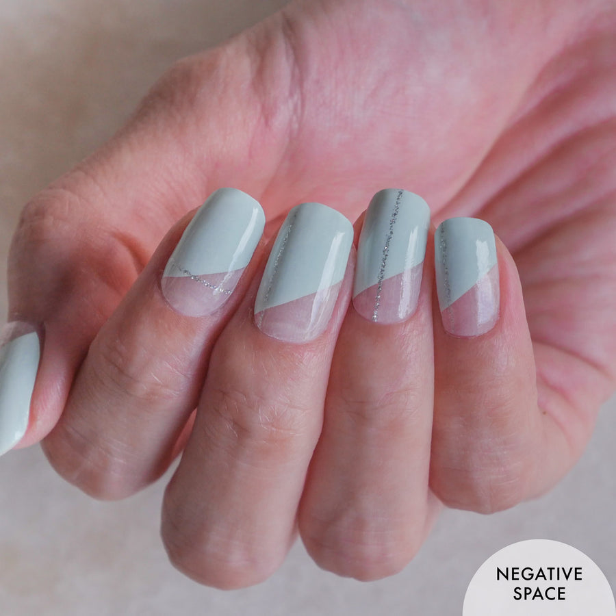 Say hello to Baby Blue Twist, a happy pastel blue, paired with silver glitter lines, that flatters every skin tone. Sharply defined by its clean, negative space, Baby Blue Twist is perfect for busy weeks when you'd love to hide your grown out nails.