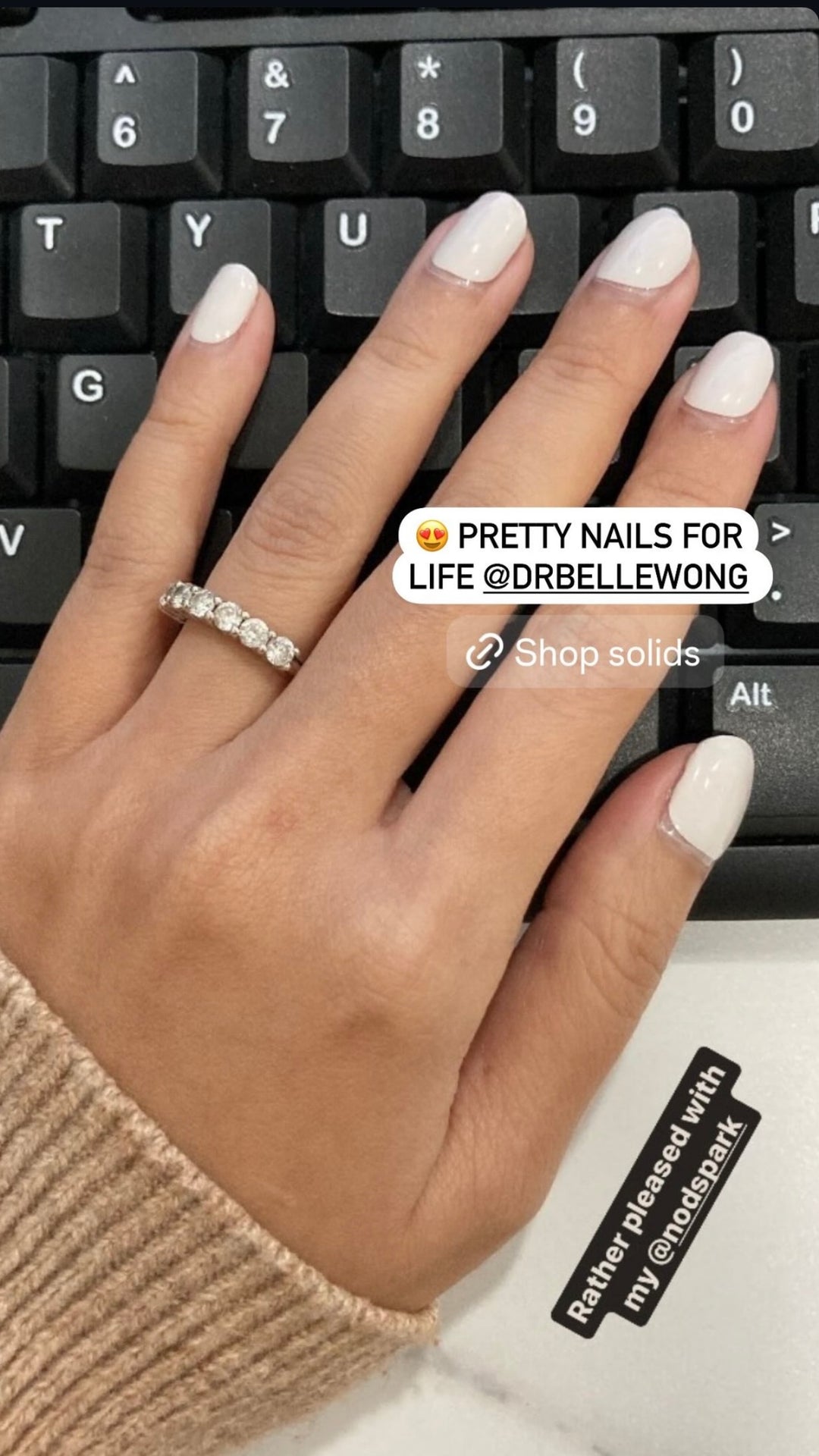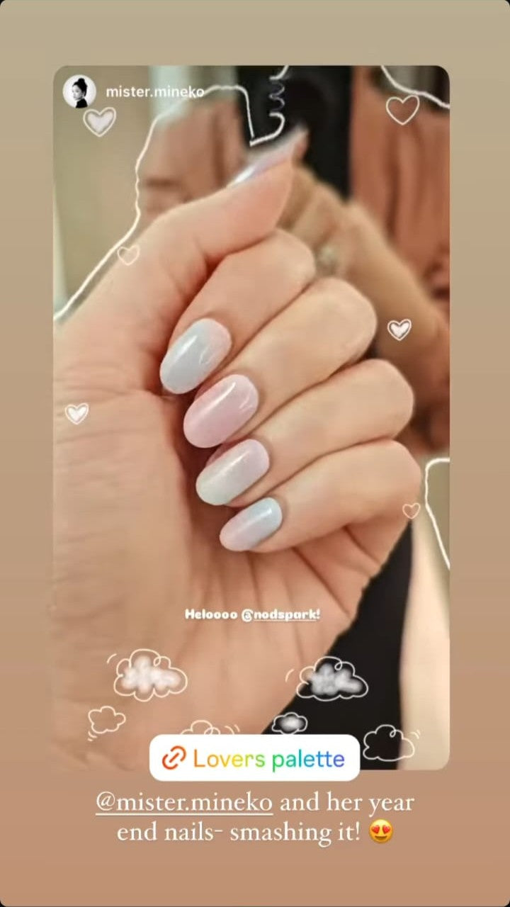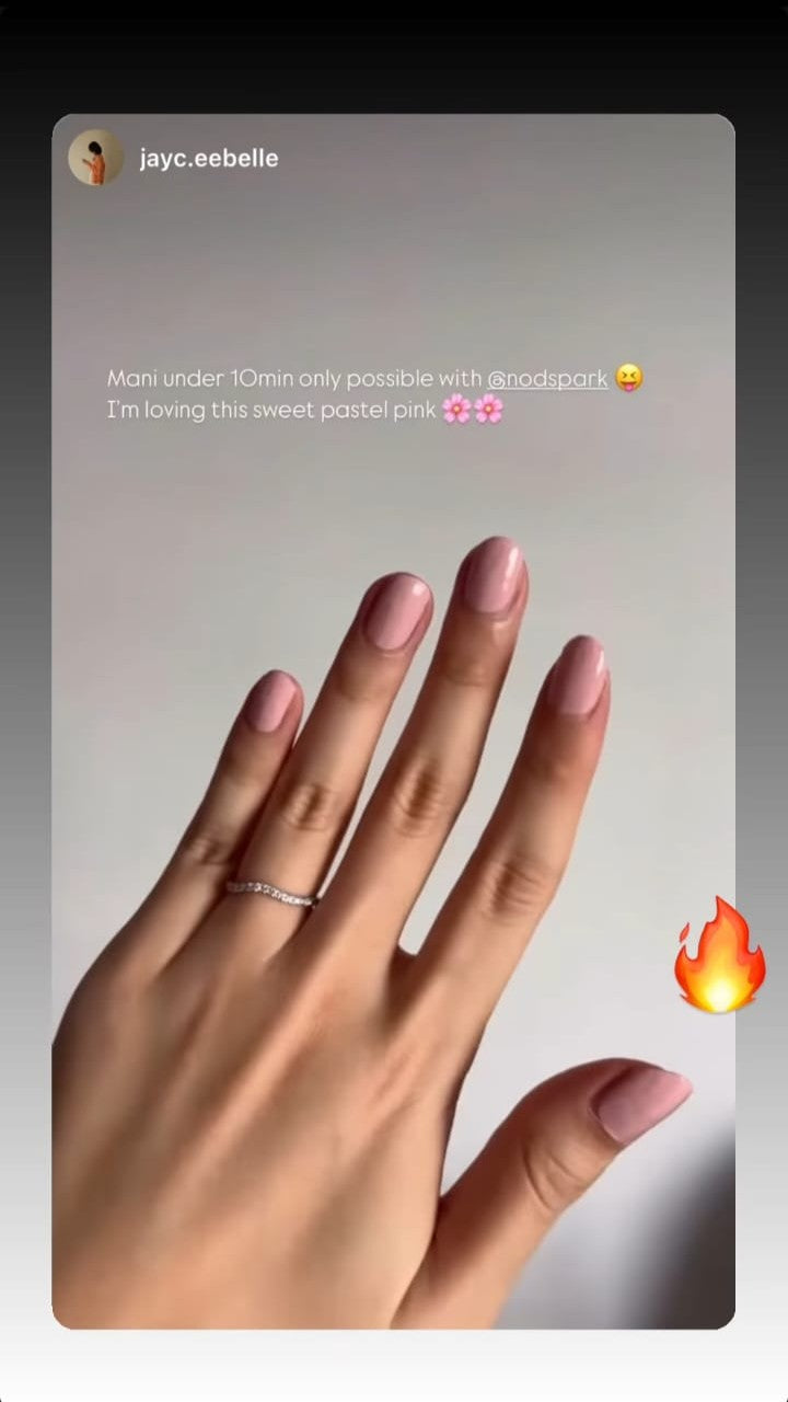 "Mani under 10min only possible with @nodspark. I'm loving this sweet pastel pink"