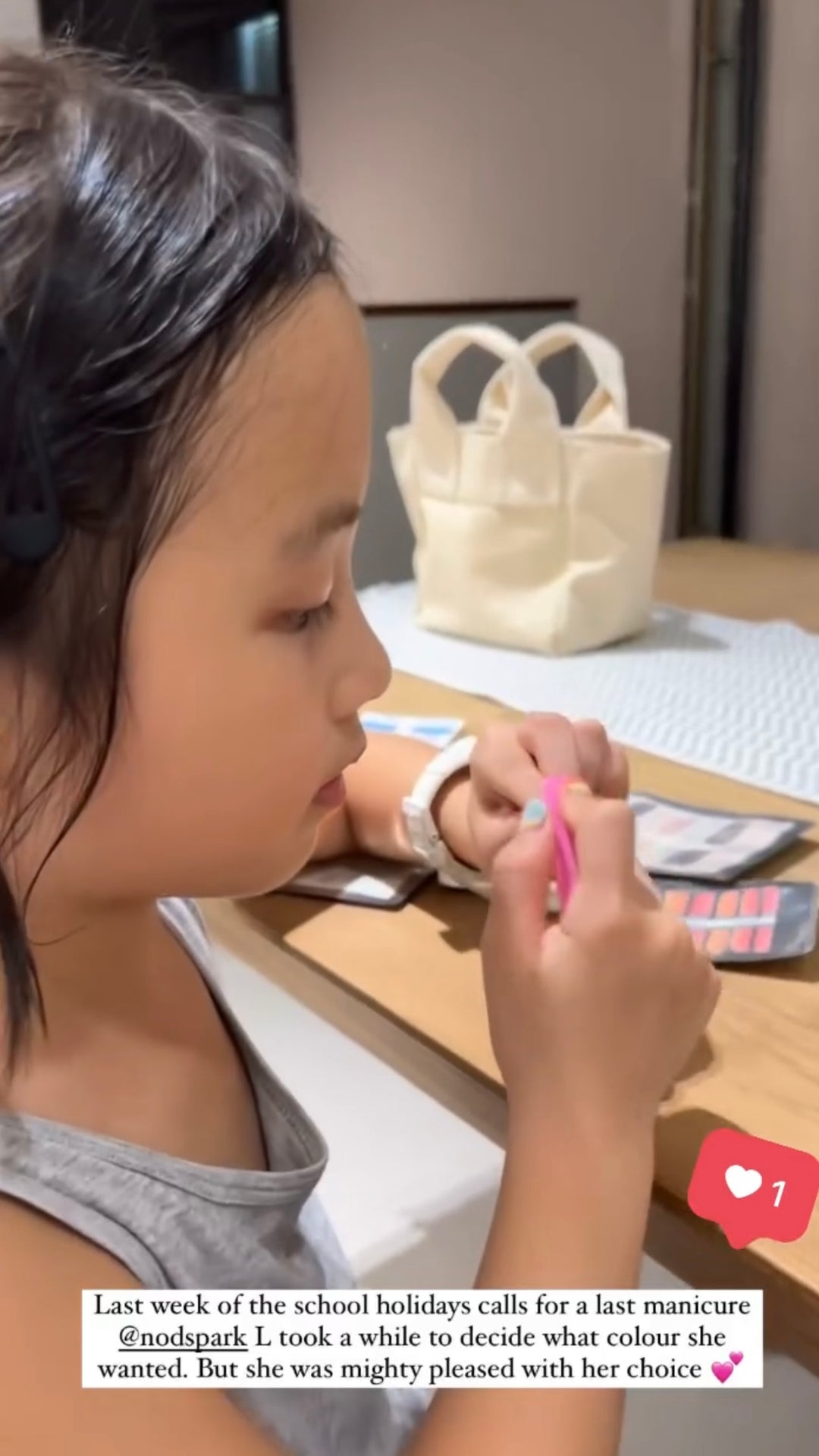 "Last week of the school holidays calls for a last manicure @nodspark. L took a while to decide what colour she wanted. But she was mighty pleased with her choice"