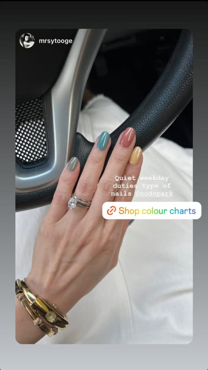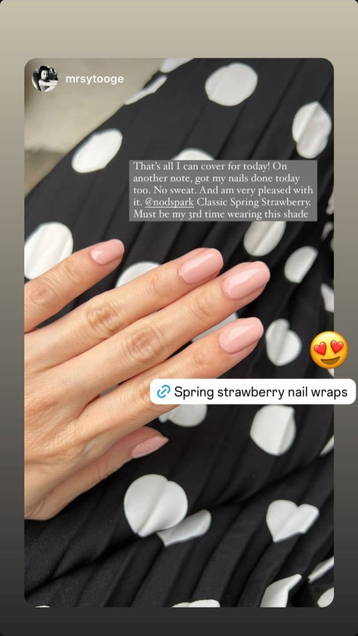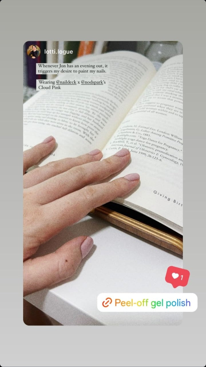 "Whenever Jon has an evening out, it triggers my desire to paint my nails. Wearing @naildeck x @nodspark's Cloud Pink"