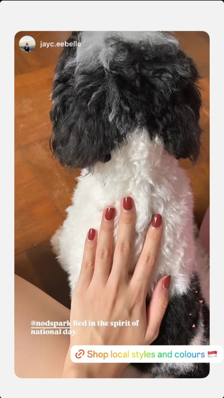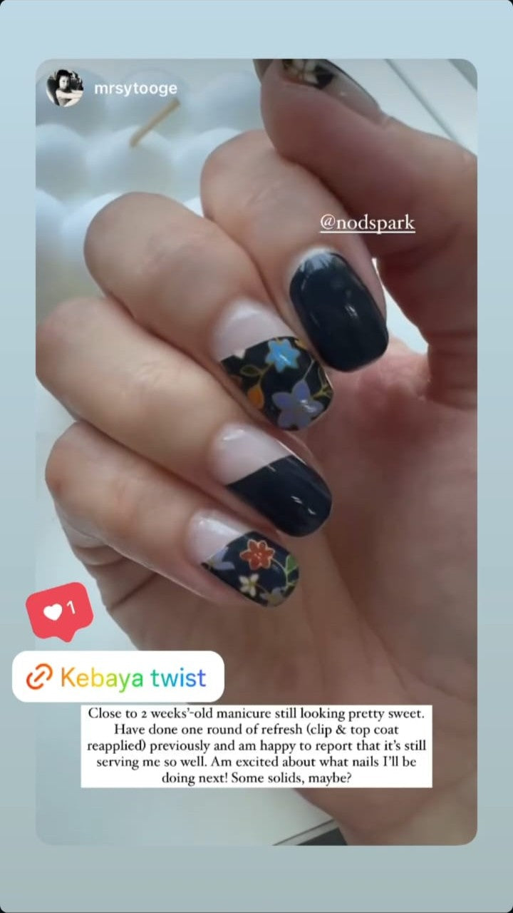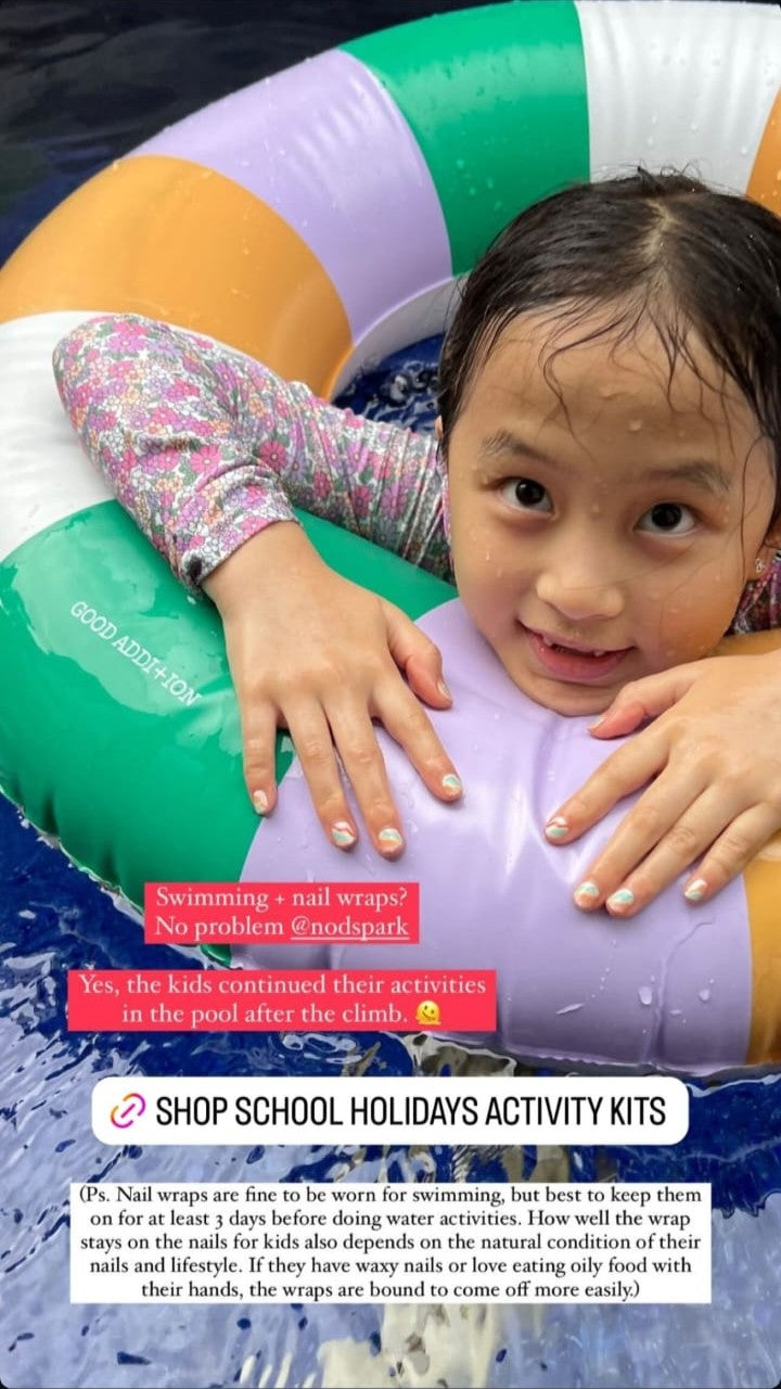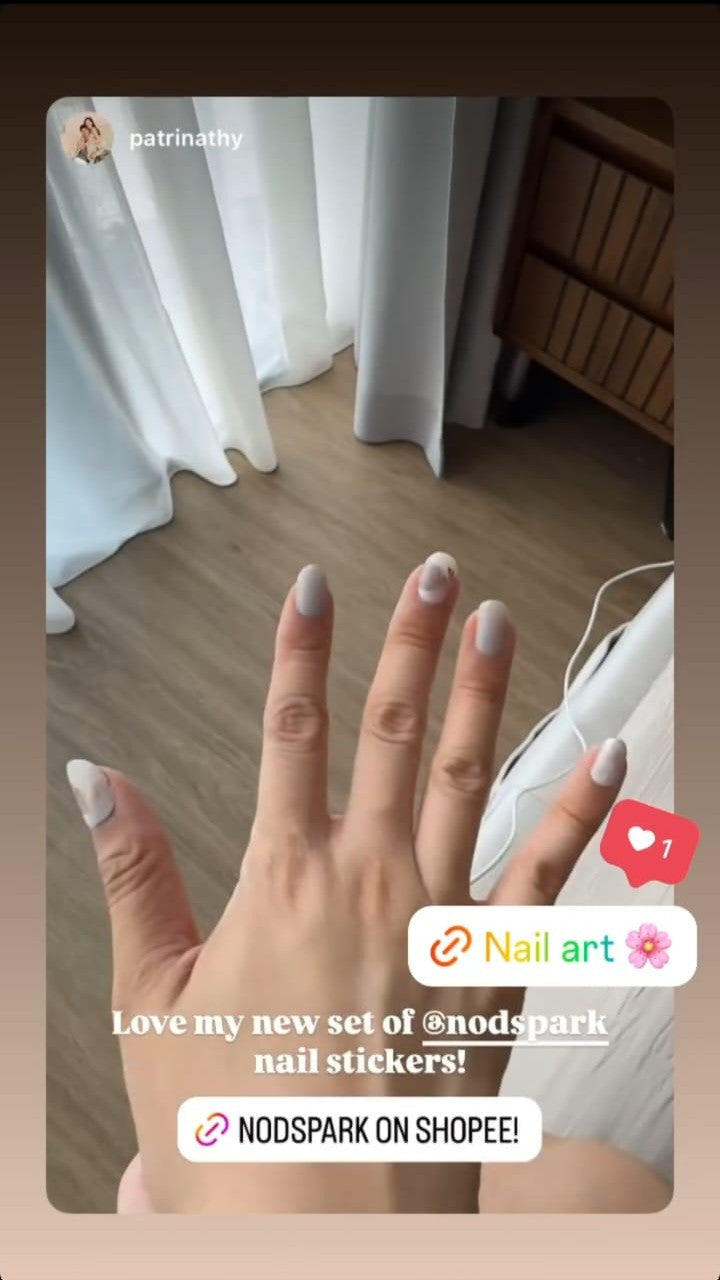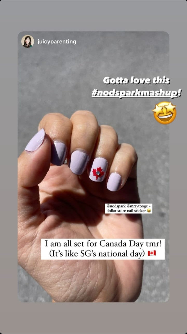 "Something special this year. I stopped manicure ever since I got pregnant. So nail wraps it shall be! My mama twinning her nails with me, she's someone who never had manicure as she injured her finger before so this is so special for us! She said the feeling is so comfy! Love the nail wraps from @nodspark So easy to apply!!"