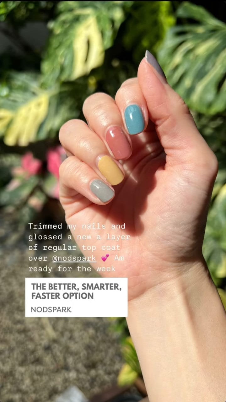 "Adding to the shade of blue with @nodspark. I love how convenient it it to be my own manicurist at home."
