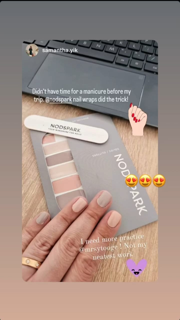 "Didn't have time for a manicure before my trip. @nodspark nail wraps did the trick!"
