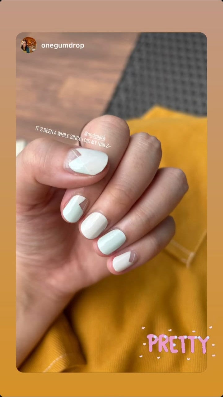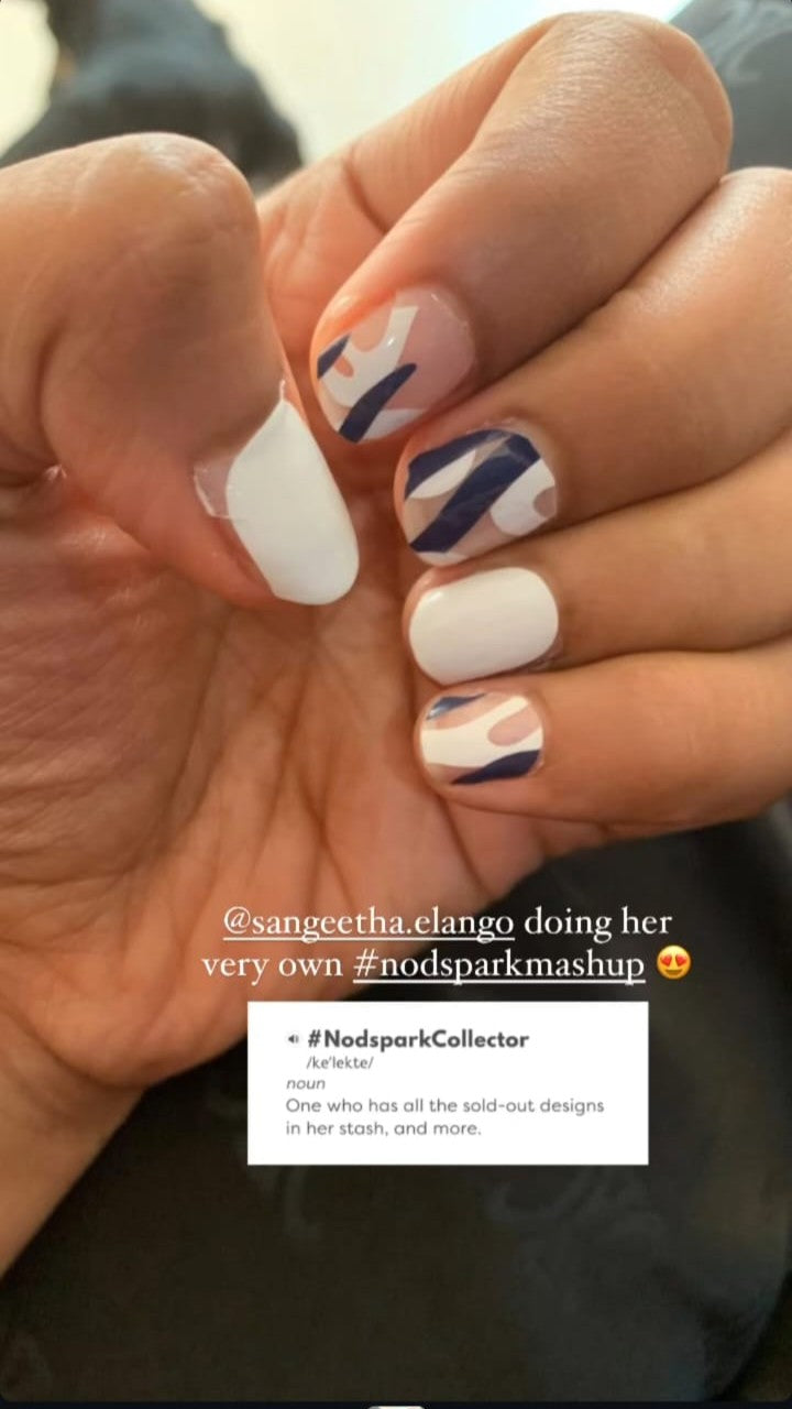 "No time for a manicure for the busy weekend, so @nodspark to the rescue! Mixed up 2 different styles for this."