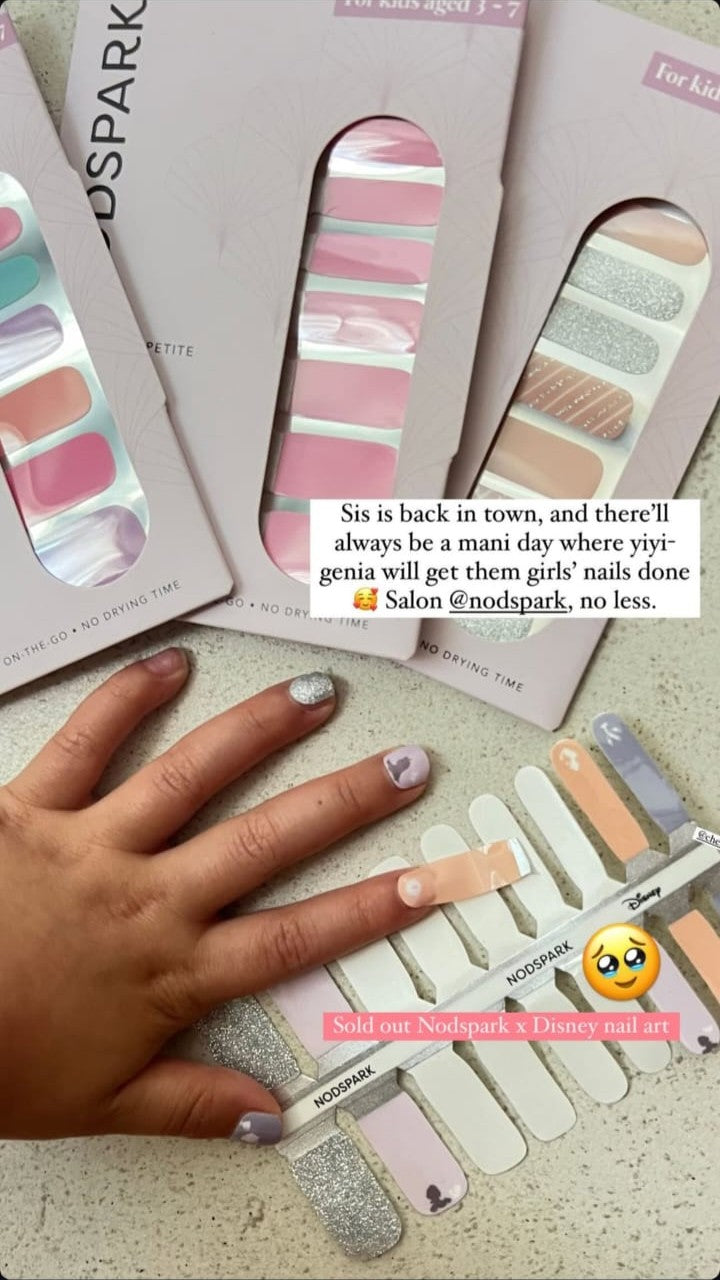 "Sis in back in town, and there'll always be a nmani day where yiyi-genia will get them girls' nails done. Salon @nodspark, no less"