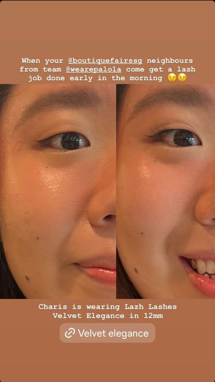 "When your @boutiquefairssg neighbours from team @wearepalola come get a lash job done in the morning"