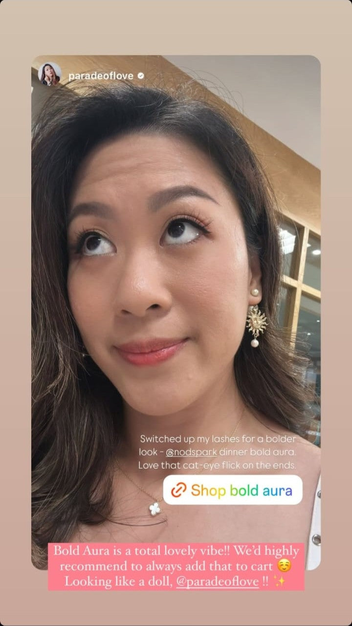 "@nodspark has been my go-to for lashes now. I get to rest my lashes whenever I need to & fix them whenever I want. Wearing Dinner Bold Aura."