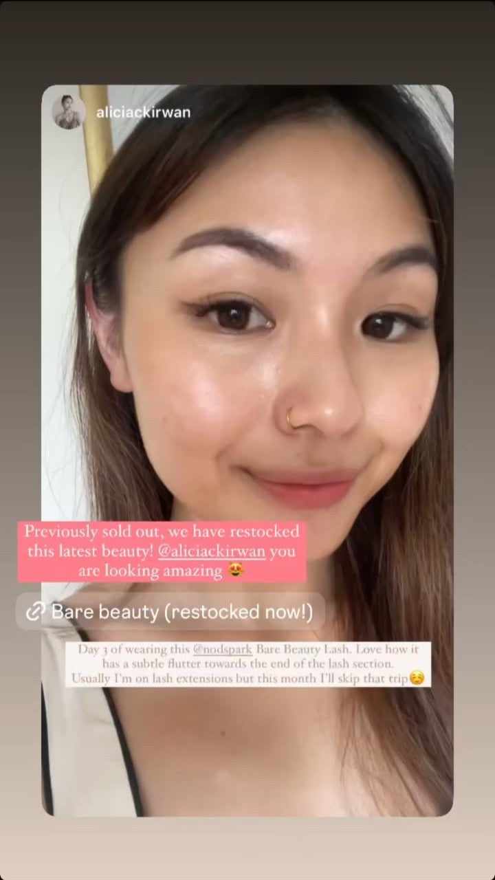 "Thank you @nodspark for these beautiful lashes! Made me look so much more alive. haha"