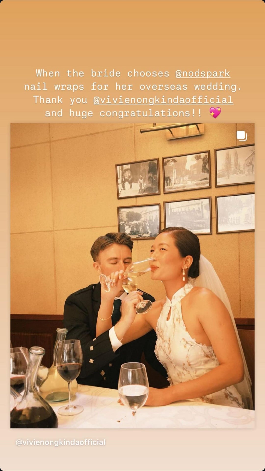"When the bride chooses @nodspark nail wraps for her overseas wedding. Thank you @vivienongkindaofficial and huge congratulations!!"