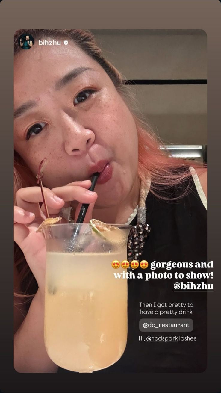"Then I got pretty to have a pretty drink. Hi, @nodspark lashes"