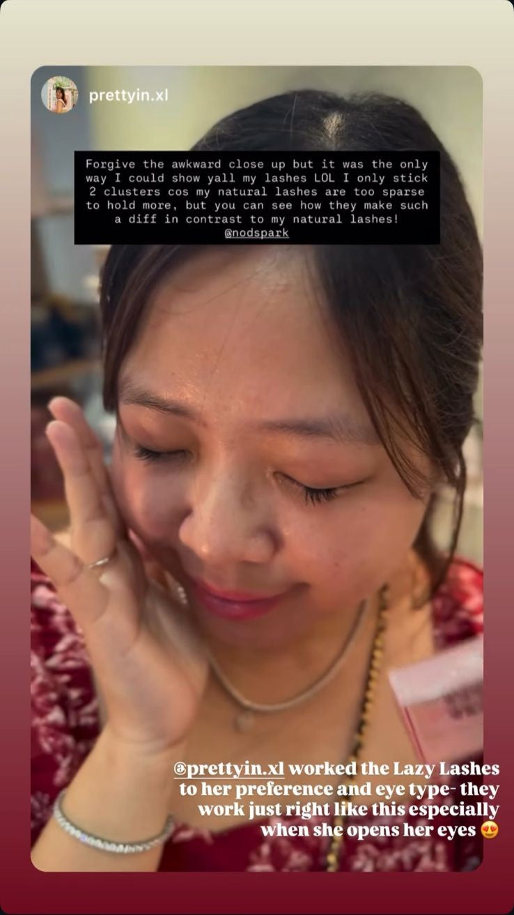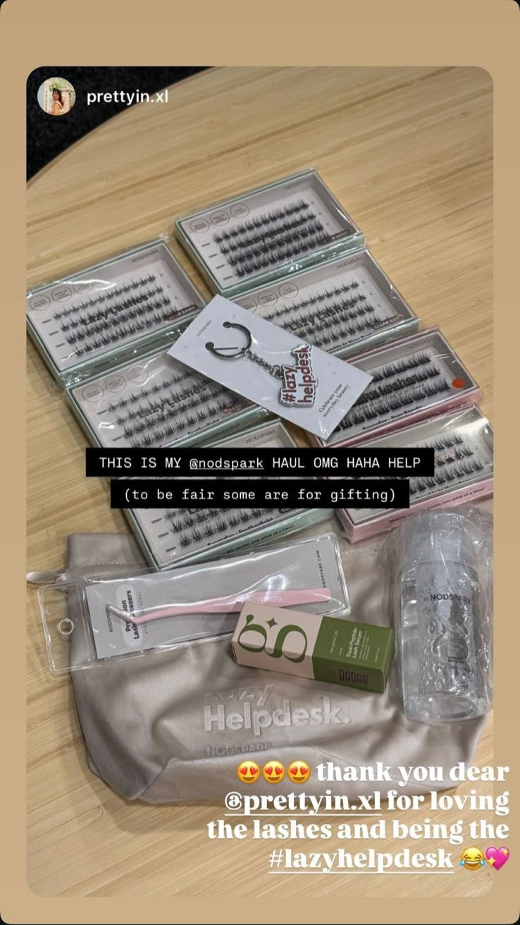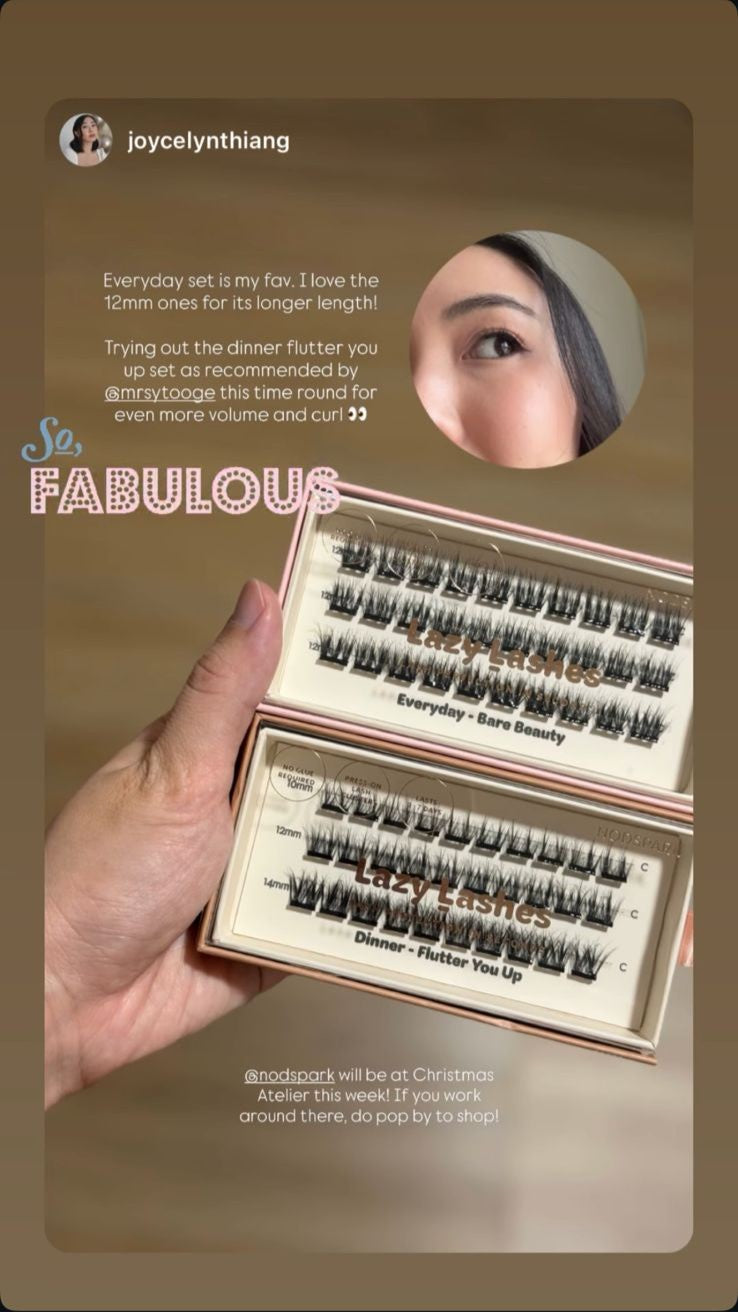 "I had dinner with my in-laws last week from moment my mil met me outside the restaurant till the time we sat down, she had checked out 2 boxes of lazy lashes @nodspark"