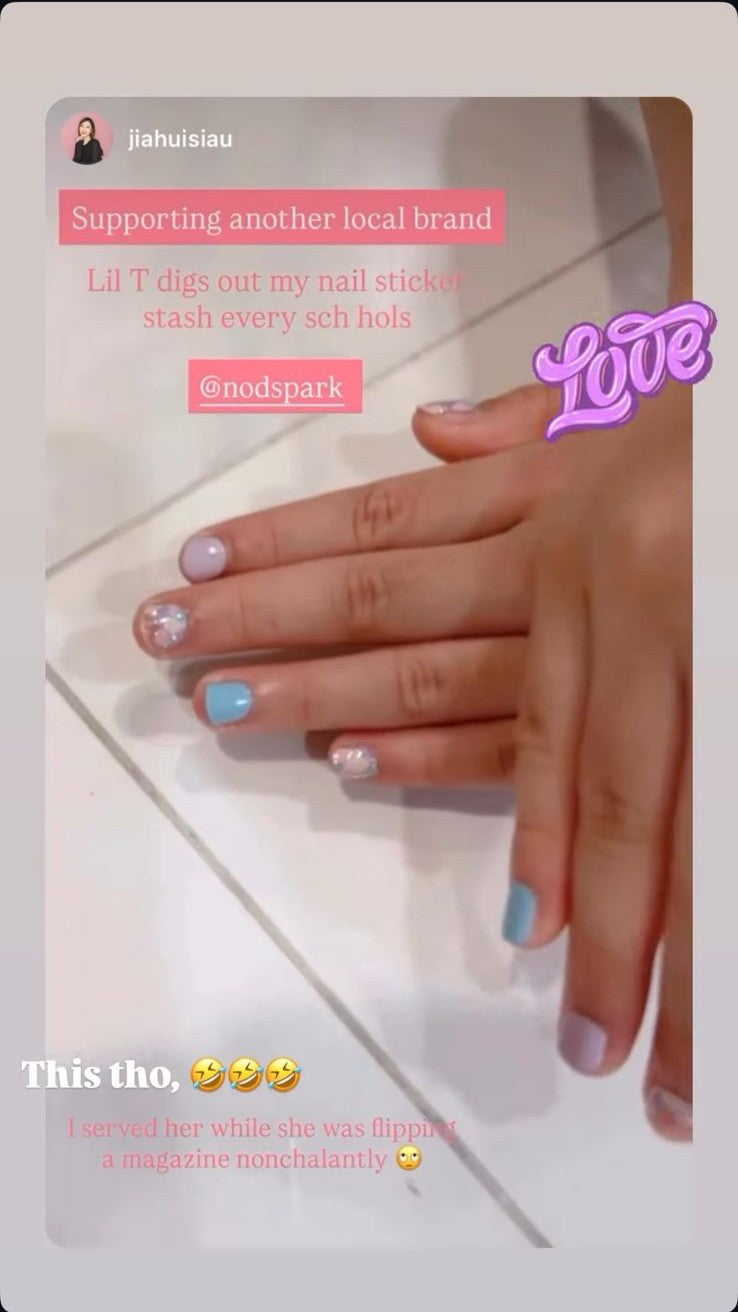 "Supporting another local brand.. Lil T digs out my nail sticker stash every sch hols @nodspark"
