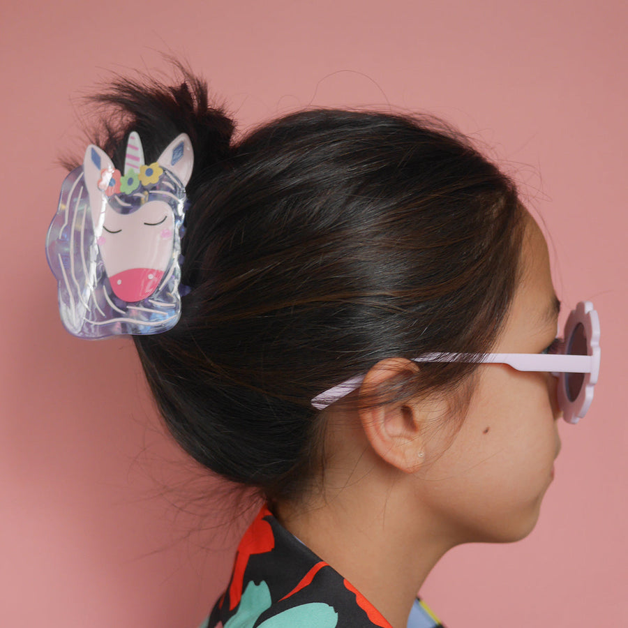 Meet Twinkle The Dreamy Unicorn, your new hair BFF! Made from premium cellulose acetate, this hair claw is built to last—stronger, more flexible, and less brittle than acrylic. Whether you're styling a full bun or a half-up look, this clip keeps your hair in place effortlessly.